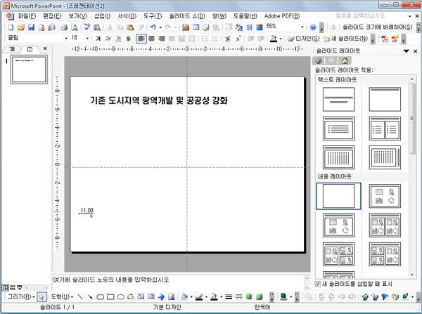 <1> 파워포인트를 실행하여 슬라이드 레이아웃을 ‘빈화면’ 으로 변경합니다.
