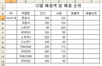 입력된 데이터에 각 행마다 일련변호를 입력하는데 중간에 새로운 행을 삽입하거나, 삭제할 때 마다 일련번호를 수정해야합니다. 행을 삽입하거나 삭제하는 것과 상관없이 행번호를 매길 수 있는 방법을 실습해 보도록 하겠습니다. <1> 워크시트의 왼쪽에는 각 행번호를 나타내는 행 머리글이 있습니다. 이 행번호를 이용하여
