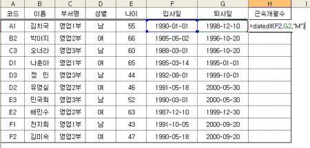 엑셀Tip_DATEDIF함수로 근속개월수 구하기
